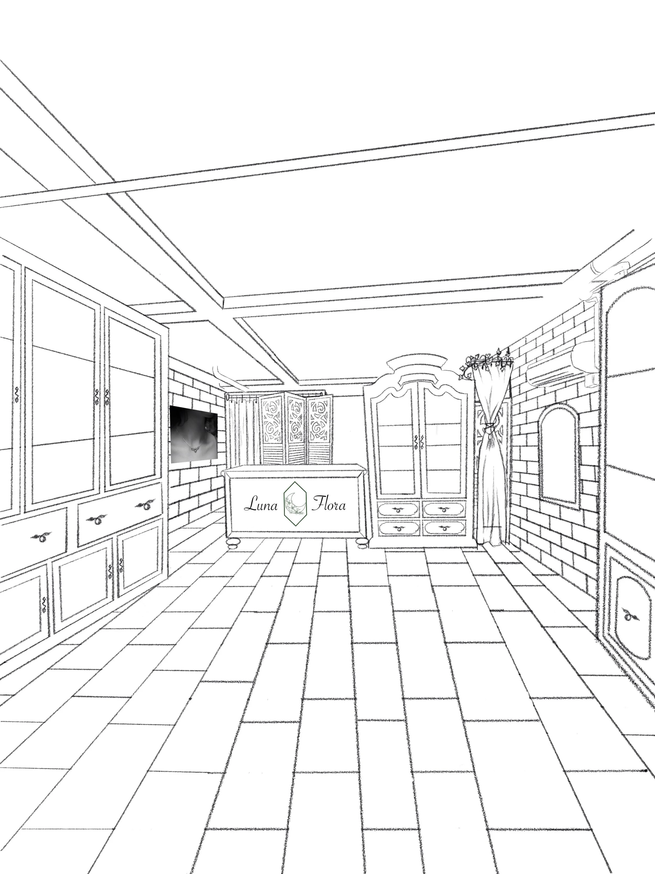 We have som exciting news! We are in the process of opening a physical storefront in Hillsboro, Oregon! Whilst there is currently a LOT of things about it up in the air and nothing is yet written in stone, we are aiming to open by Autumn of 2025. To the right is an incoplete sketch concept for the store that we are hoping to bring to life. If you can, picture walking into a Jewelry store located in Rivendell or Lothlorien of Middle Earth run by Elves. This dream of ours is an attempt to make not only the most beautiful but also the most unique jewelry store you may ever see. With stunning Art-Nouveau inspiration and handcrafted works on display, this store is meant to be an immersive experience for anyone who visits!